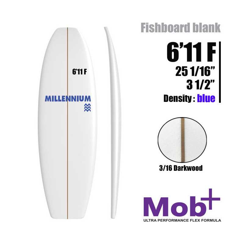 SURF BLANK 6'11 F FIsh MILLENNIUM 3/16 darkwood Density : BLUE standard